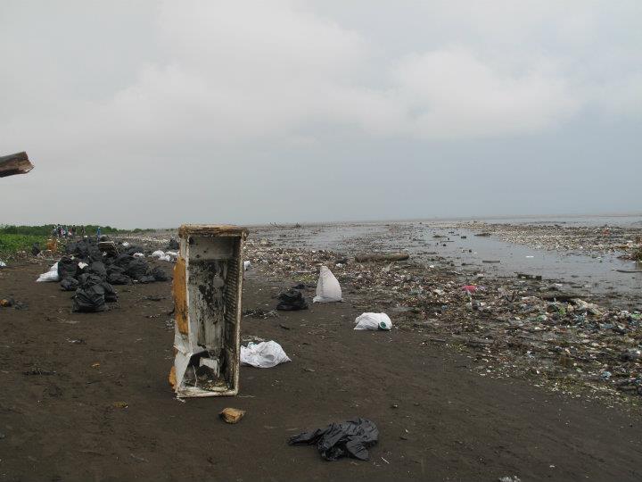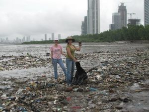 Cuando llegamos primero a Panama Viejo, nos entregaron 2 bolsas negras, 2 guantes y una cartilla con un lápiz para apuntar la cantidad y qué tipo de material recolectamos. Caminamos hacía el área del manglar, no es algo bueno, pero nos resulto fácil recolectar el material porque las raíces de los árboles no permitían que regresara al mar. En su mayoría encontramos botellas plásticas (sodas, detergentes, bebidas) ; calzados (chancletas y zapatos); foam (pedazos de coolers, vasos, recipientes de comida rápida) . No demoramos ni 30 minutos llenando las 2 bolsas. Las sacamos al área donde las estaban montando al camión de basura y terminamos.