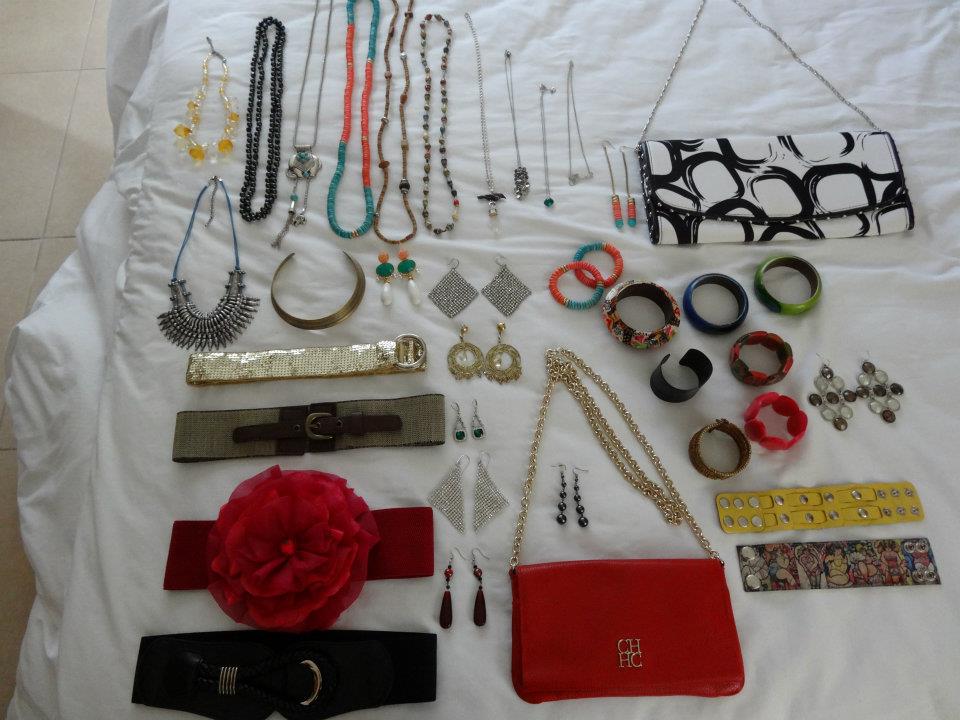 Me llevé mi jumpsuit étnico y correa de elástico crema/chocolate. Cartera de flecos y aretes de filigrana dorados. Mis zapatos de cut-outs cremas de plataformas. Resultaron cómodos.