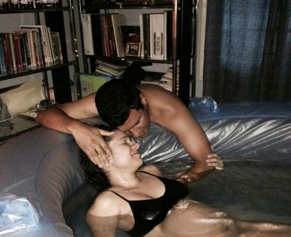 A eso de las 4:00 a.m. durante una contracción rompí fuentes y se salió el tapón mucoso. Le avisamos al Dr que ya iba en camino con su esposa . Cuando llegaron, me revisó y gracias a Dios, a la Virgen y a todos mis Santitos ya tenía de 8-9 cm de dilatación. Me alegré tanto con la noticia porque a pesar de sentir que cada contracción iba incrementando, me repetía que venía peor y me funcionó. Ahora, tenían que apurarse para armar y llenar la piscina porque ya sentía diferentes las contracciones, pronto vendrían las ganas de pujar.