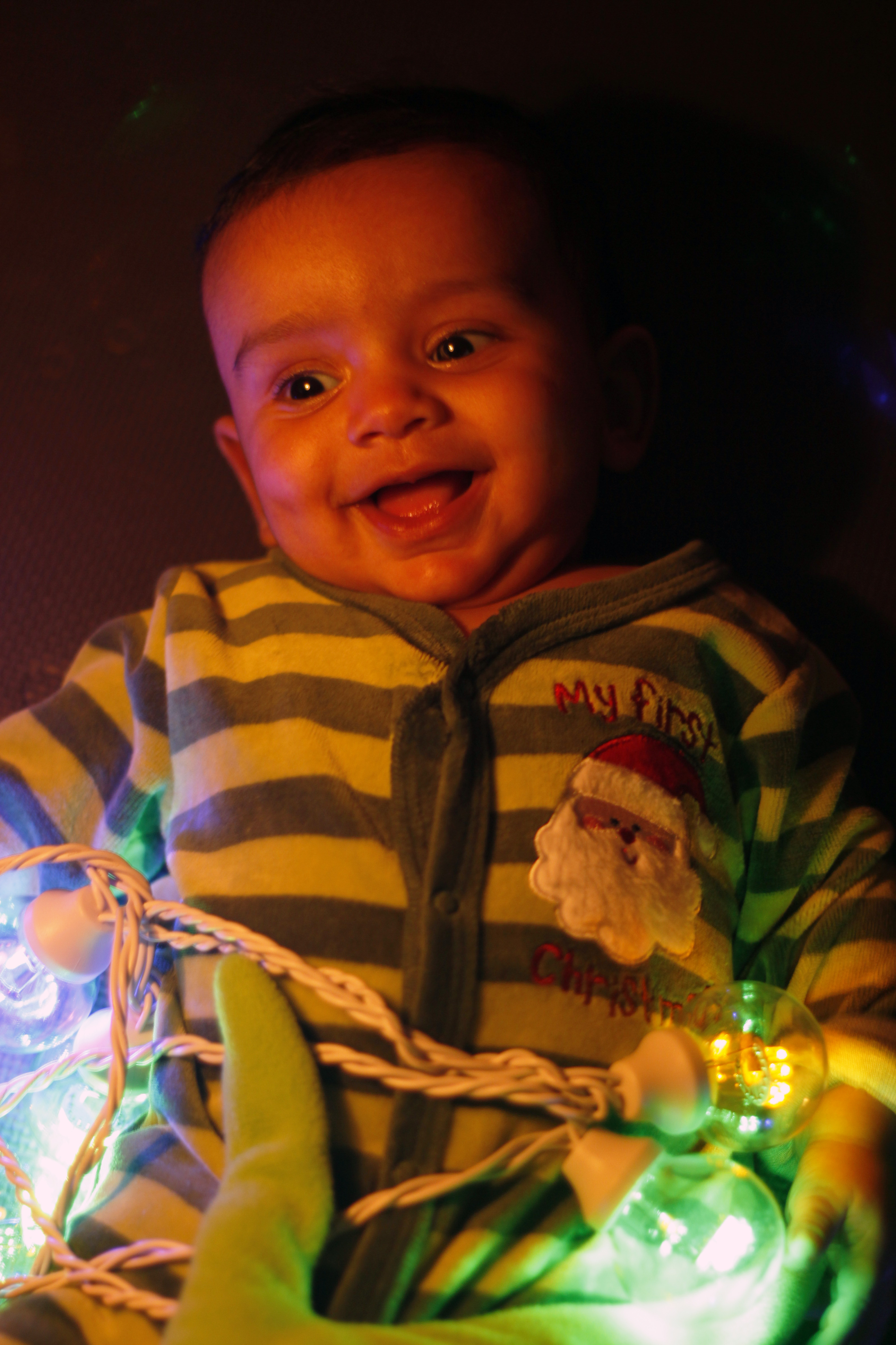 Y en otras notas navideñas, gracias a los tíos y a Padme por el onesie de «My First Christmas» nos inspiramos para la sesión de los 4 meses de Adrián y por mera casualidad encontré unos guantes de Grinch que cayeron de a dedo.