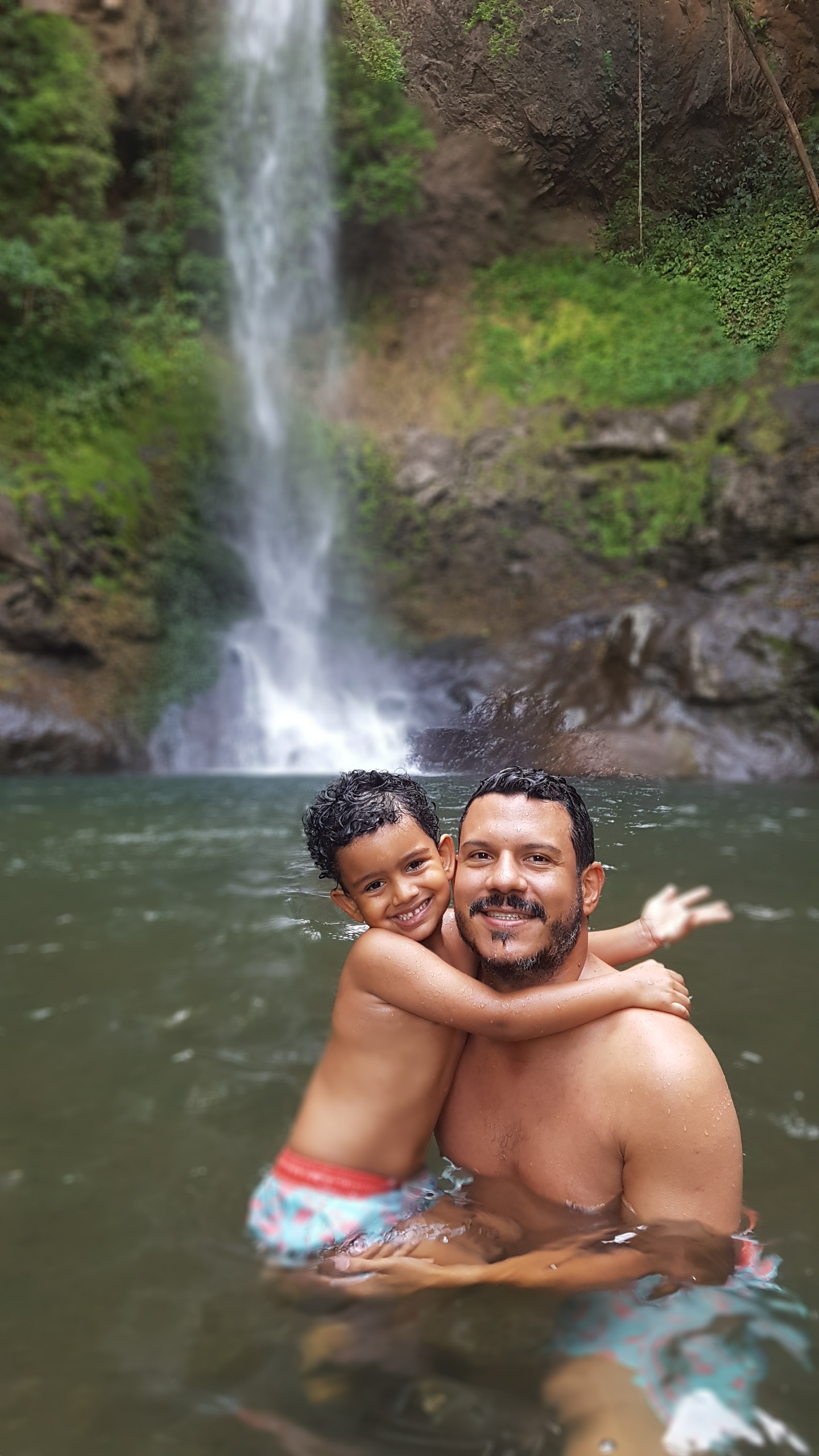 El sábado después del desayuno bajamos a la cascada de nuevo. Mi esposo llevó su cámara (creo que para chifiar el chapuzón frío) . Adrián y yo si nos metimos y nos divertimos muchísimo.