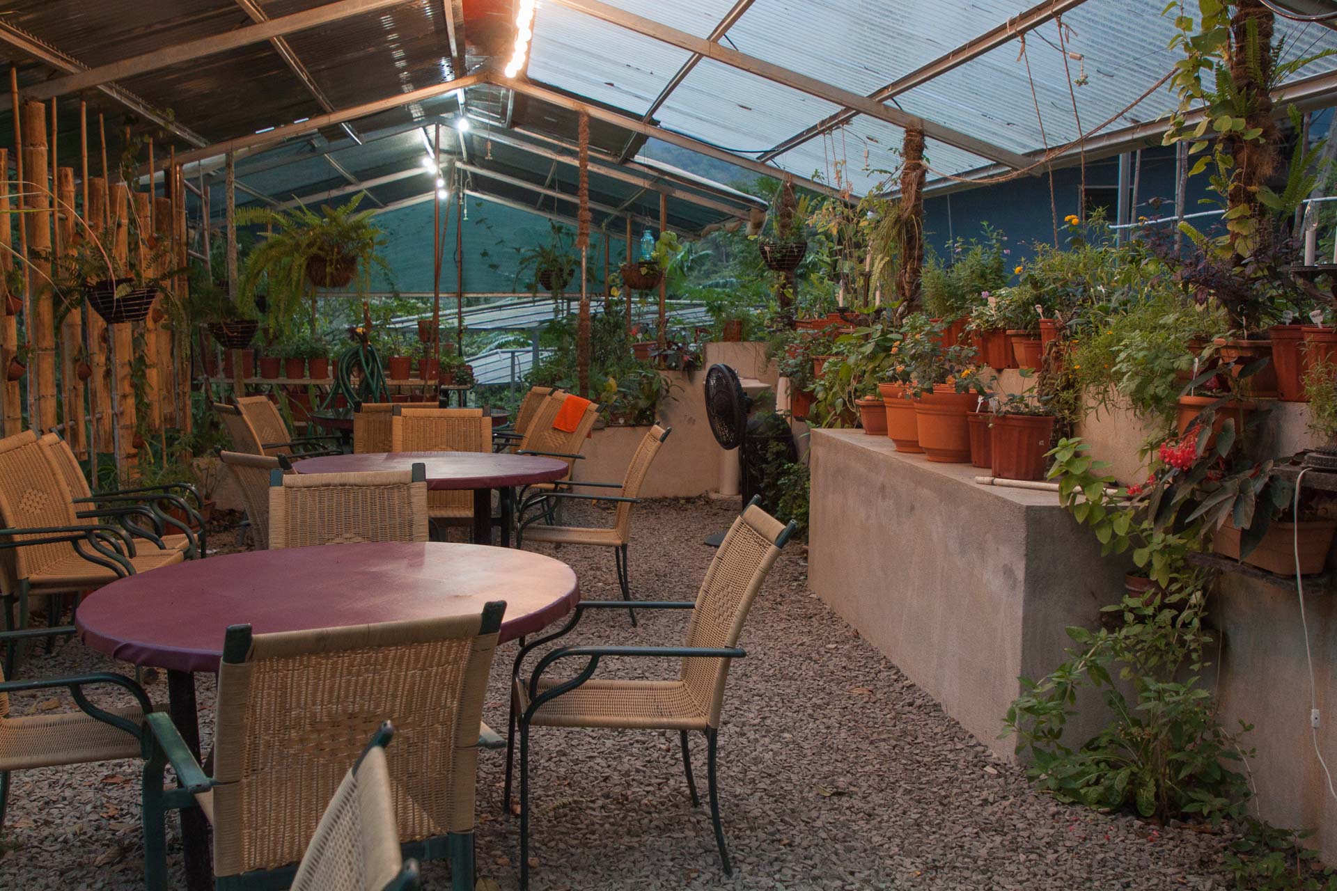 A la hora del almuerzo nos atendieron en esta área que tiene cientos de plantas medicinales, comestibles, finas hierbas. La comida: DELICIOSA y la atención buenísima. Pedimos sancocho, tajadas y cervecitas (perfección).