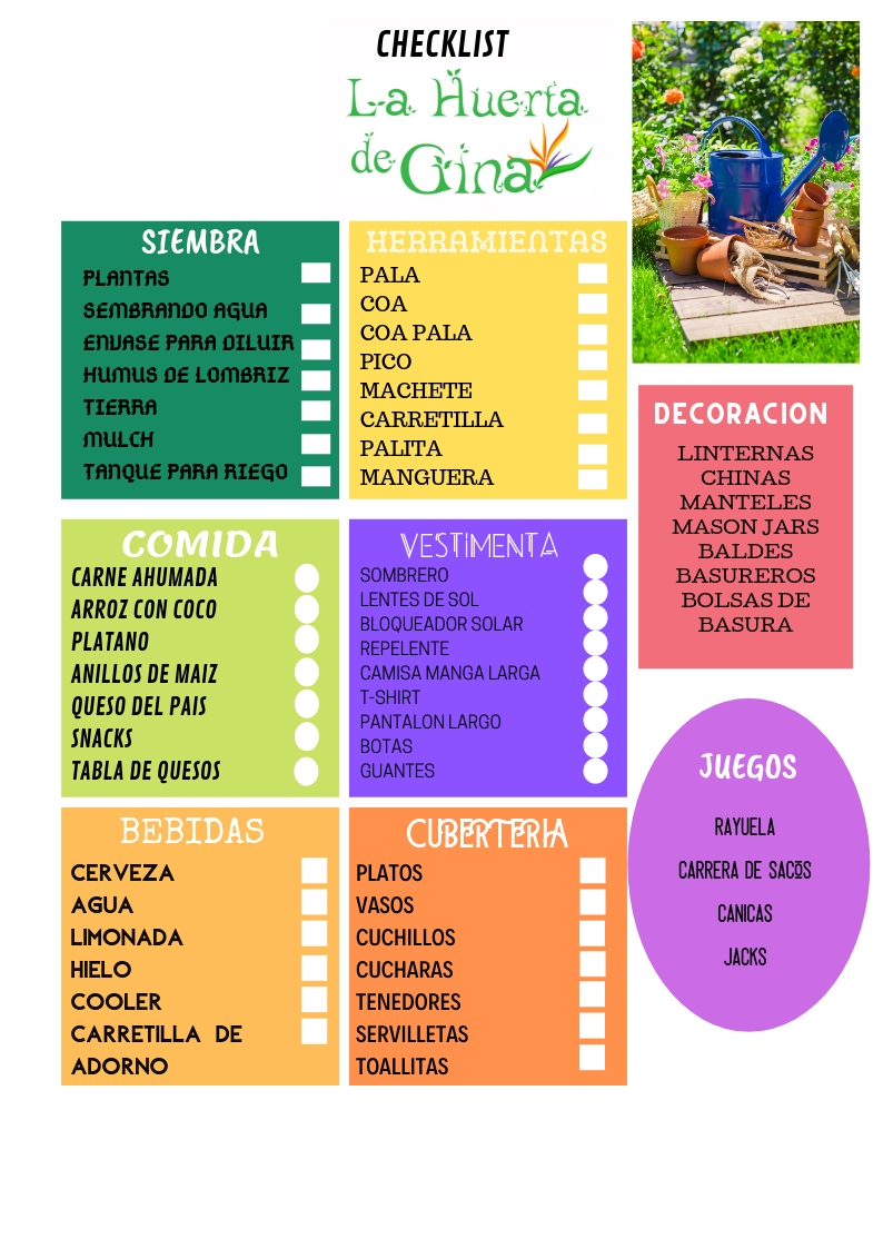 Y como todo en la vida, ya el domingo llega nuestro día de siembra #2 en Espavé. Preparé un checklist para no olvidar nada.