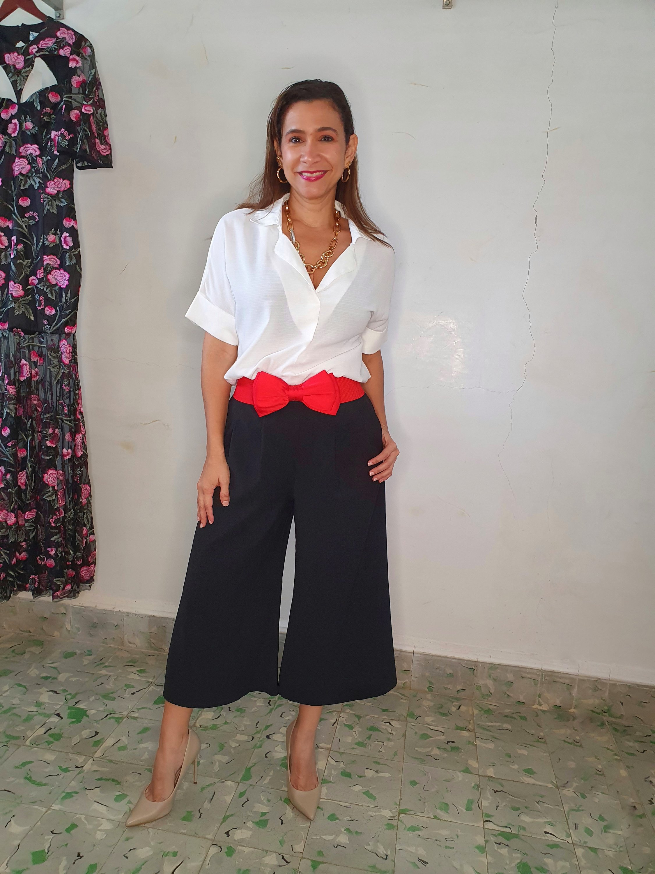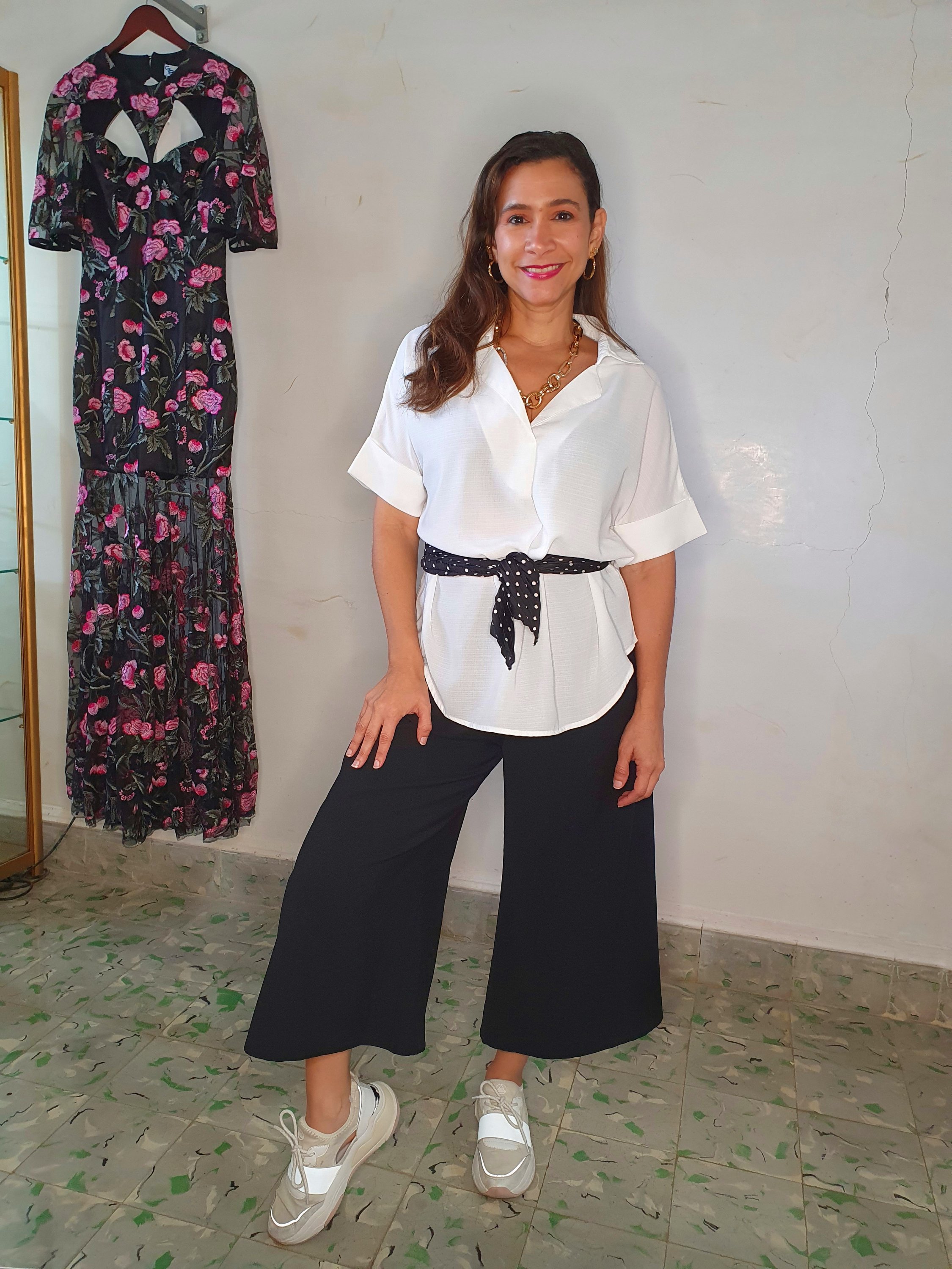 En todas las combinaciones me quedé con la cadena y las argollas que funcionan para día o noche. Se podría cambiar aun más el look si vamos cambiando los accesorios.