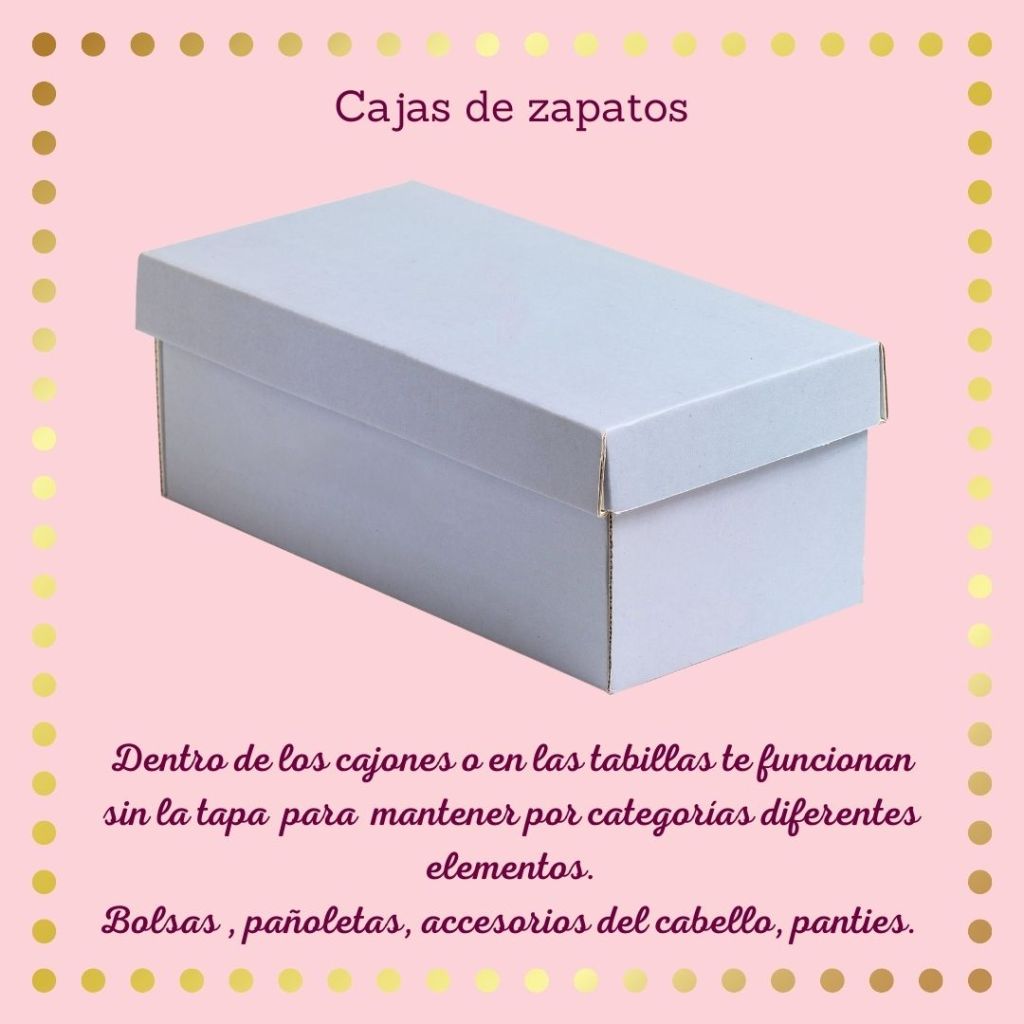 Las cajas de zapatos te pueden servir para realizar divisiones dentro de los cajones, en las tablillas.